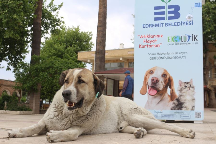 Edremit Belediyesi, sokaklarda yaşayan hayvanlar için belirlenen noktalara “MamaMatik” yerleştirdi. Bu otomat ile pet şişe, cam şişe ve metal atıklar atıldığında otomatik olarak hayvanlara mama veriliyor.