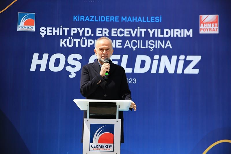 Açılış töreninde selamlama konuşması gerçekleştiren Çekmeköy Belediye Başkanı Ahmet Poyraz “ Bugün iki kütüphanemizin açılışını yapacağız. Gençlerimiz bilgiye kolay ulaşsın, istedikleri zaman sesiz ve sakin bu ortamlarda çalışsınlar diye butik kütüphanelerimizi hizmete açıyoruz. Bugün Kirazlıdere Mahallemizde açtığımız kütüphanemizi ismini verdiğimiz Ecevit Yıldırım’ın ablaları Mayşeker Akçay, Mubar Aslan ve abisi Gürsel Yıldırım burada aramızdalar. Onların vesilesi ile şunu belirtmek isterim; bu vatan bu bayrak için toprağa düşmüş nice yiğitler var, haklarını ne yapsak ta ödeyemeyiz. Biz onların adlarını yaşatıp gelecek nesillere örnek olarak göstereceğiz ve hiçbir zaman unutmayacağız. Sultançiftliği Mahallemize açtığımız Fuat Sezgin Kütüphanemiz ve Kirazlıdere Mahallesi Piyade Er Ecevit Yıldırım kütüphenemizin ilçemize, gençlerimize ve çocuklarımıza hayırlı olmasını diliyorum. İnşallah önümüzdeki haftalarda ilçemize yeni kütüphaneler kazandırmaya devam edeceğiz, “ dedi.