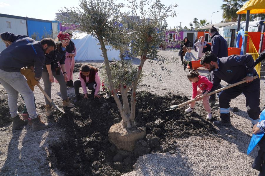 Beylikdüzü Belediyesi’nin Beylikdüzü Kaymakamlığı iş birliğiyle Hatay’da kurduğu çadır kentte peyzaj düzenlemeleri de başladı. Ağaçlandırma çalışmaları kapsamında 50 adet zeytin ağacının ilk etapta 10 tanesinin dikimi çadır kentte yaşayan çocuklarla birlikte gerçekleştirildi. Zeytin ağaçlarının dikileceği alana Dayanışma ve Dostluk Parkı adı vereceklerini belirten Beylikdüzü Belediye Başkanı Mehmet Murat Çalık, “Diktiğimiz zeytin ağaçları yaşamı ve umutları filizlendirecek; çocuklara ve afetzedelere nefes olacak” dedi.