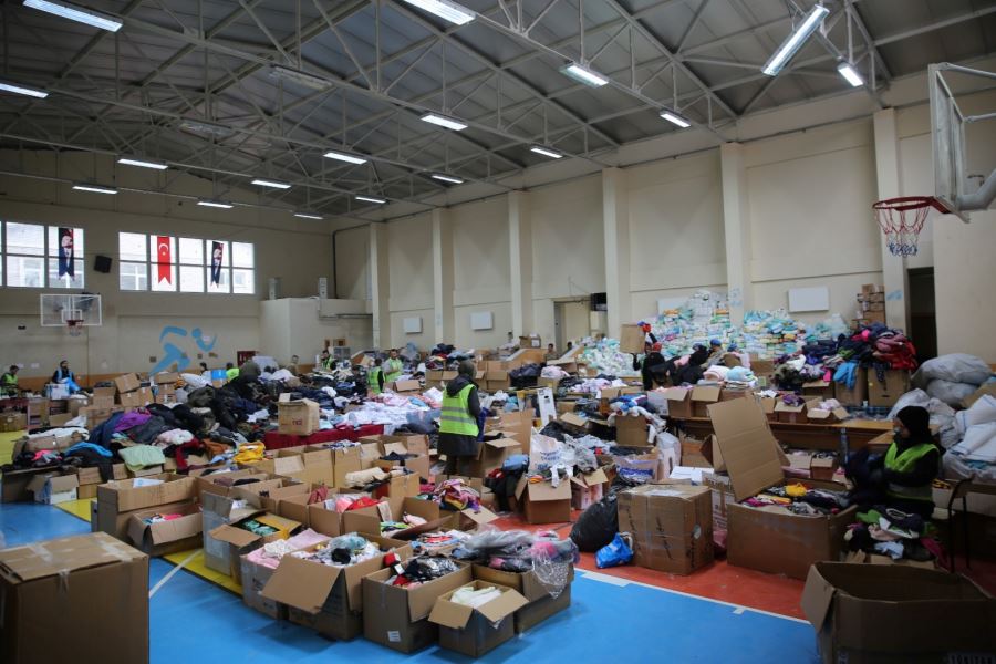 Tırlarla ve diğer araçlarla lojistik merkezine gelen kuru gıda, bakliyat, giyim, battaniye, yorgan ve ısıtıcı gibi malzemeler Büyükşehir personelinin yanı sıra bölgede görev yapan asker ve polis gibi güvenlik güçlerinin yardımıyla ayrı ayrı tasnif ediliyor. Lojistik merkezinde görev yapan personel yardım ve dağıtımların Ramazan kolisi şeklinde olmasının dağıtımları kolaylaştırdığını ve aileler tarafından da tercih edildiğini ifade ediyor. Lojistik merkezine kendileri gelen aileler veya depremzedeler de merkezin içinde istedikleri malzemeleri seçerek alabiliyor.