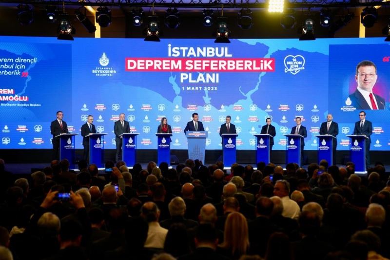 İstanbul Büyükşehir Belediyesi (İBB), şehrin depreme dirençli bir kent haline getirilmesi amacıyla başlattığı seferberlik planını kamuoyu ile paylaştı. Toplantı; CHP Genel Sekreter Yardımcıları Seyit Torun, Gökçe Gökçen, İBB Başkanı Ekrem İmamoğlu, Adana Büyükşehir Belediye Başkanı Zeydan Karalar, Mersin Büyükşehir Belediye Başkanı Vahap Seçer, aralarında Prof. Dr. Naci Görür, Prof. Dr. Celal Şengör ve Prof. Dr. Haluk Eyidoğan gibi ülkenin önde gelen yer bilimcilerinin bulunduğu isimlerin katılımlarıyla gerçekleştirildi.