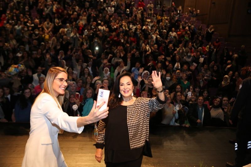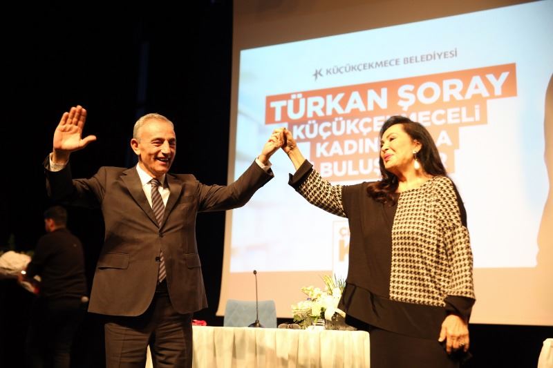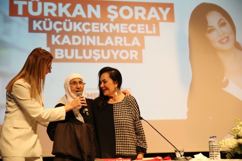Gördüğü sevgi ve tezahüratlar karşısında duygusal anlar yaşayan Türkan Şoray’ı sahnede, Küçükçekmece Belediye Başkanı Kemal Çebi karşıladı. Başkanın çiçek takdimi sonrası Başak Koç moderatörlüğünde gerçekleşen söyleşiye Şoray ‘’O sıcak sevginizle, alkışlarınızla beni duygulandırdınız. Sizleri çok seviyorum. Küçükçekmece’nin sıcak kadınları ve sıcak insanları; ne kadar güzelsiniz. Keşke aranıza gelsem size sarılsam sizi öpsem. Sizin sevginizle beslenmek çok güzel.’’ diyerek başladı.