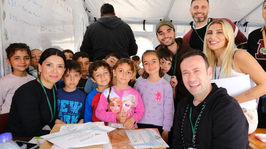 Yonca Evcimik, İrem Derici, Atakan Işıktutan ve Özgür Aras, depremden kurtulan çocuklara sanatla terapi etkinliği için Hatay’a gitti.